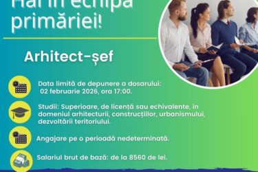 ❗Hai în echipa Primăriei 🏃♂️🏃♀️🏃 ❗Căutăm Arhitect – Șef❗ 👉Salariul brut de bază începe de la 8560 lei 👉Înscrie-te până pe 02 februarie 2026, ora 17:00 Dispoziția Primăria Călărași nr.15 din 14.01.2026 Anunțul cu privire la prelungirea concursului privind ocuparea funcției publice vacante de arhitect-șef