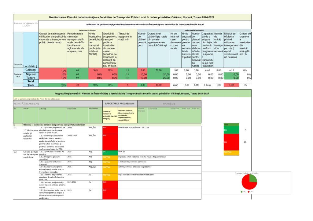 Progresul implementării Planului de îmbunătățirea și dezvoltare a Serviciului de transport public local Călărași-Nișcani-Tuzara pe parcursul anilor 2024-2027