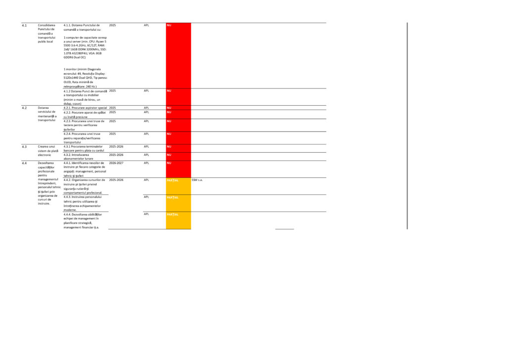 📌 Documentul oferă o imagine de ansamblu asupra implementării Planului de Îmbunătățire a Serviciului de Transport Public Local.