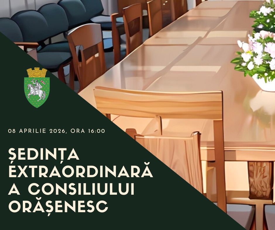Se convoacă în ședință extraordinară consiliul orășenesc Călărași pentru ziua de miercuri, 08 aprilie 2026, ora 16:00, în sala de ședințe a primăriei orașului Călărași, etajul 1, str. M. Eminescu nr.19, cu următoarele proiecte de decizii:
